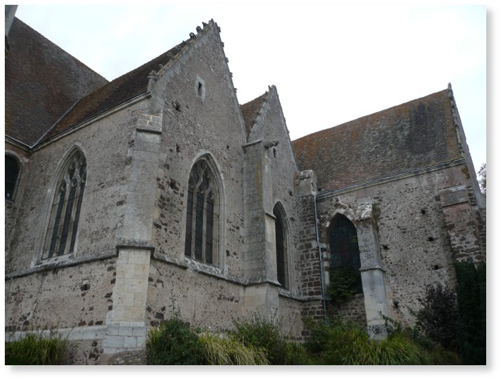 L'édifice fut considérablement agrandi au XVe et XVIe siècles par la construction d'un large transept, formé de deux chapelles, et d'un bas-côté sud formant un alignement de pignons accolés aux rampants ornés de motifs feuillagés et terminés de chimères.